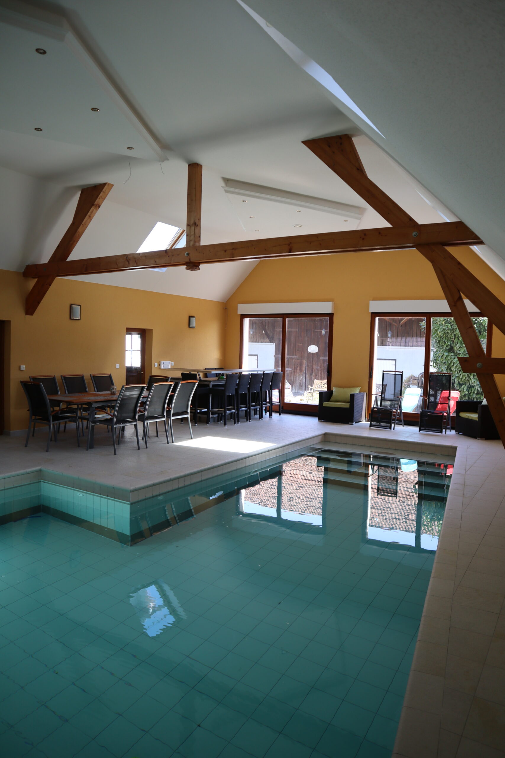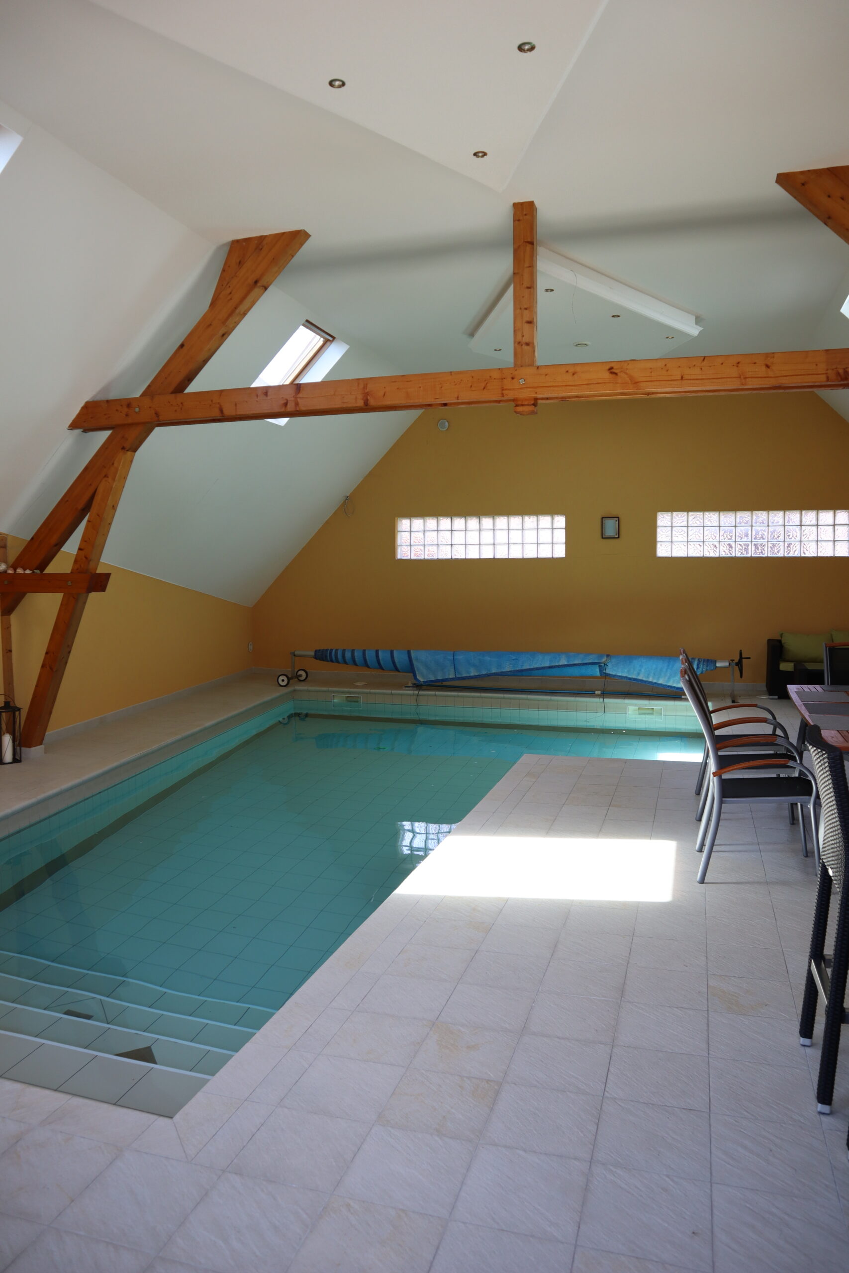 Piscine intérieure chauffée jusqu'à 32°C chauffage assuré par une pompe à chaleur, wc séparé, salle d’eau enfin coin bar aménagé pour se détendre avec un accès direct à la terrasse de 37m²