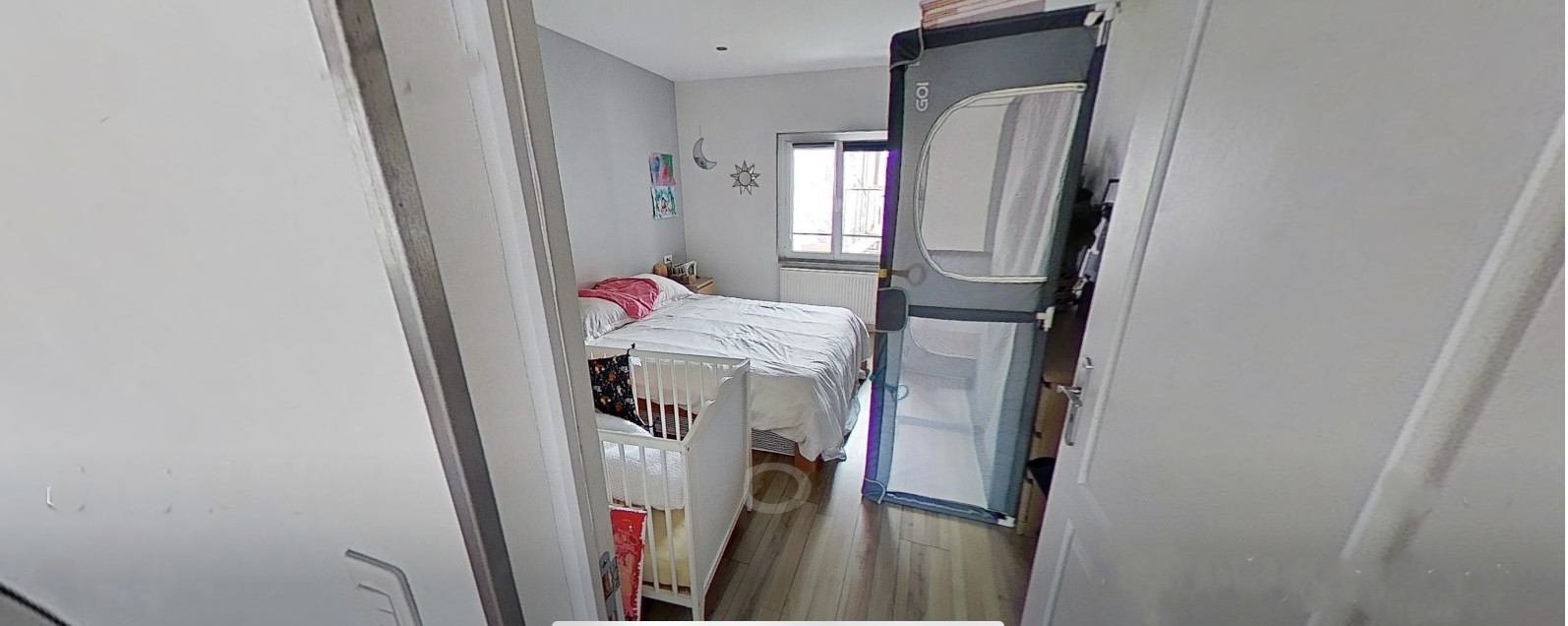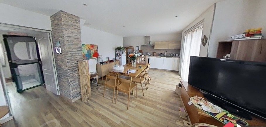 Au premier étage, un appartement 4/5 pièces de 103m² 3 chambres avec un petit balcon, une salle d’eau et un wc séparé, chauffage individuel au gaz, cave loué 650 €hors charges