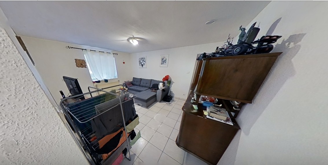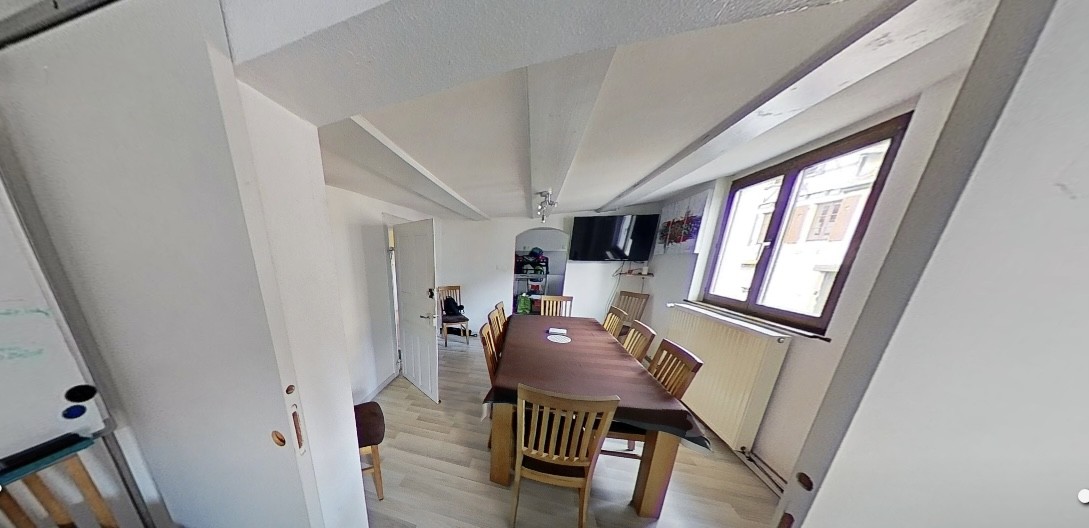 Au deuxième, un appartement de 3 pièces à rafraichir de 50m² carré habitable et 60m² au sol chauffage individuel gaz, cave (occupé par les propriétaires)