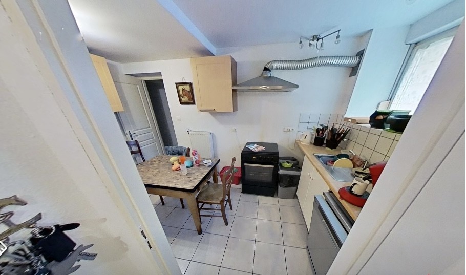 Au rez de chaussée : un appartement de 4 pièces de 79m² trois chambres, sdb, cuisine chauffage individuel au gaz, cave à rafraichir loué 465 € hors charges
