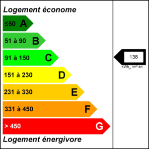 DPE:C 138 / 25 réalisé le 01/08/2025 énergie primaire : 138 kWh/m²/an