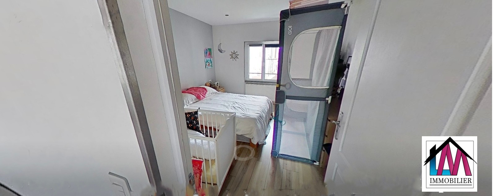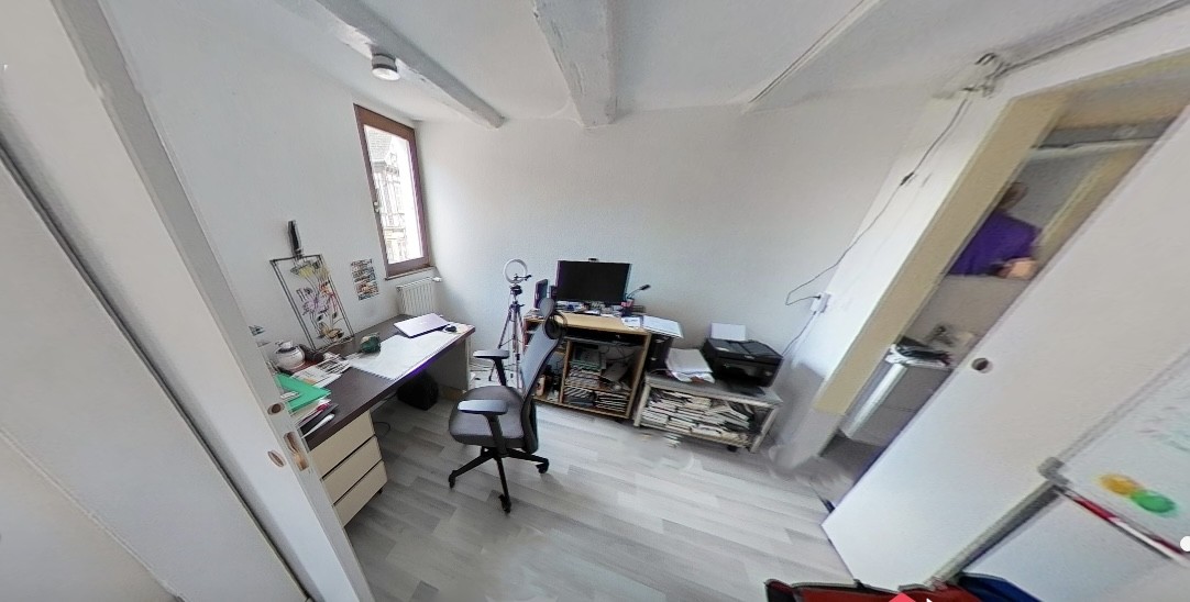Au premier étage, un appartement 4/5 pièces de 103m² 3 chambres avec un petit balcon, une salle d’eau et un wc séparé, chauffage individuel au gaz, cave loué 650 €hors charges